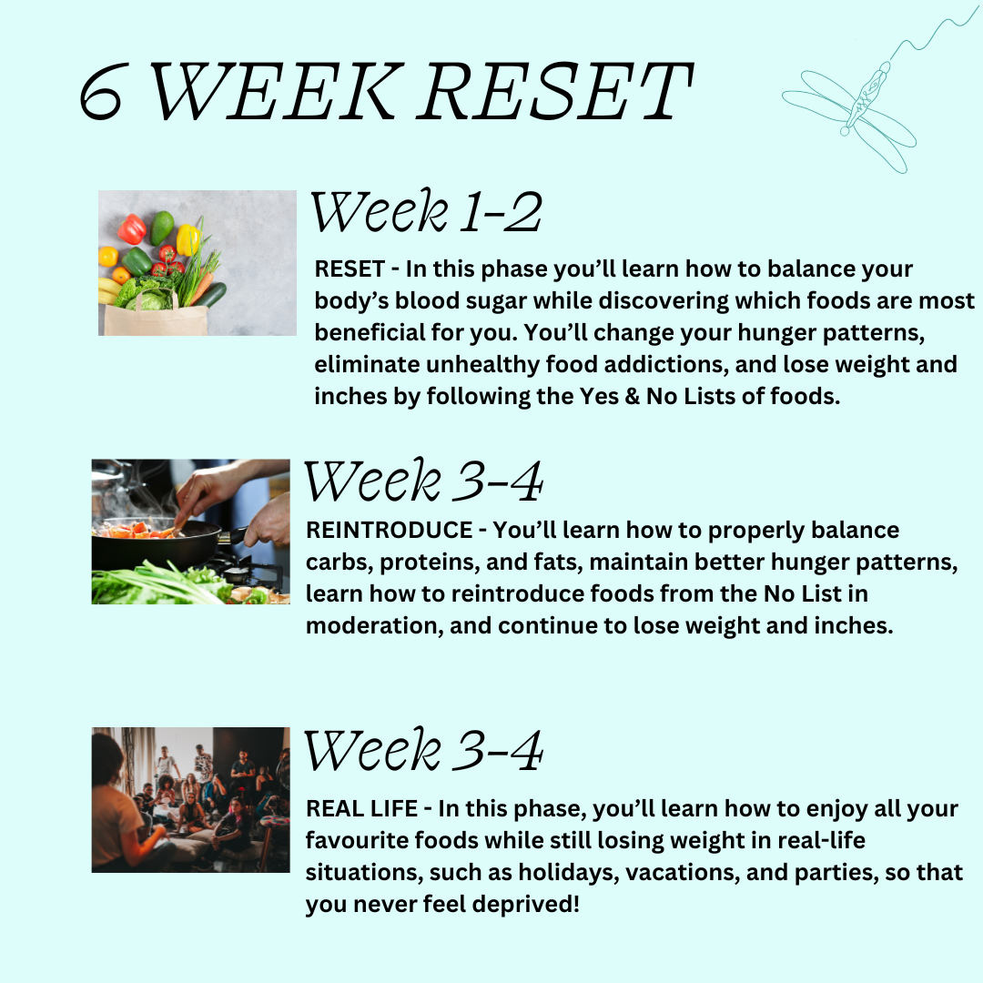 Reintroduce: Once your system is reset, you gradually reintroduce nourishing foods that support your metabolism and overall wellness. This phase is an ideal time to implement mindful eating, as you can tune in to how each food makes you feel, enhancing your body awareness.